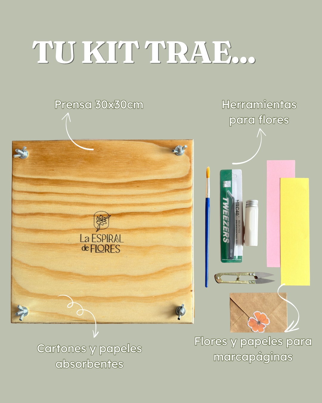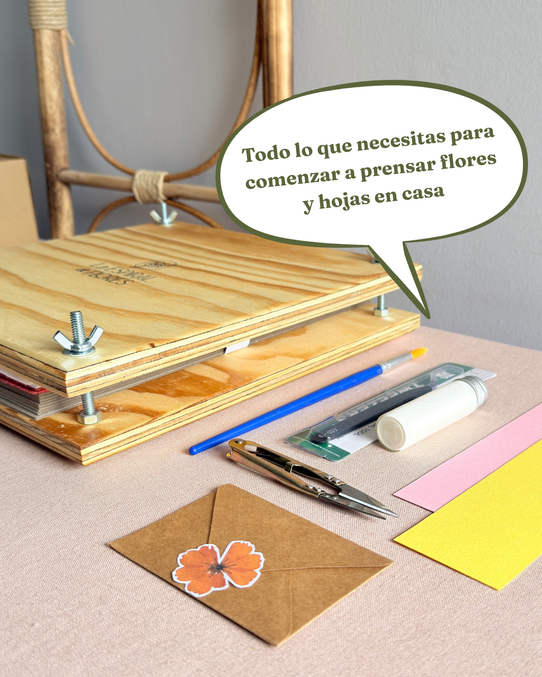 El Kit de prensa floral es un pack diseñado para quienes aman las flores y desean hacer una buena inversión: ideal tanto si estás comenzando como si ya tienes algo de experiencia y buscas más y mejores materiales.